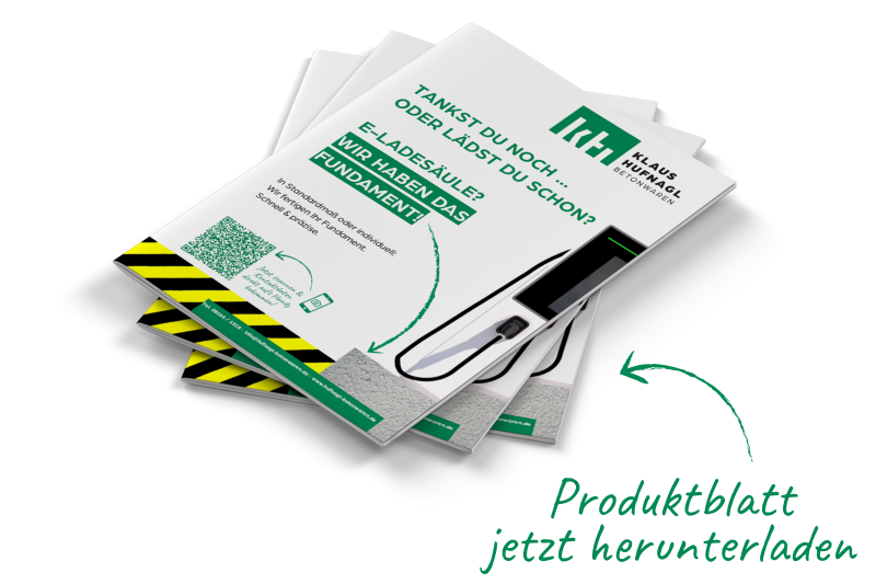Ob im privaten Umfeld, auf gewerblich genutzten Flächen oder im öffentlichen Raum – unsere Fundamente für E-Ladesäulen bilden die stabile Basis für unterschiedlichste Anwendungen. Wir fertigen in Standardgrößen oder individuell nach Maß – präzise, zügig und mit einer Betonqualität von mindestens C 25/30. Konstruktiv bewehrt, auf Wunsch mit Leerrohren ausgestattet und vielseitig einsetzbar – unsere Fertigteile sind bis ins Detail durchdacht.